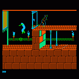 Сначала я отнесся к этой идее скептически: и быстродействие, и память явно малы для игры такого уровня. У меня были планы попроще: сделать Zeliard или Supaplex (и почему мы не начали с них?). Пашка вроде бы отступился, но через несколько дней пришел с демонстрашкой, на которой горел факел из Принца! Да, это было красиво, но ведь игра потребует гораздо большего! Но Пашка не унимался и регулярно приносил демки, в которых принц бежал, выпивал кувшин, карабкался вверх на плиту. Он убедил меня, что хотя бы попробовать стоит.